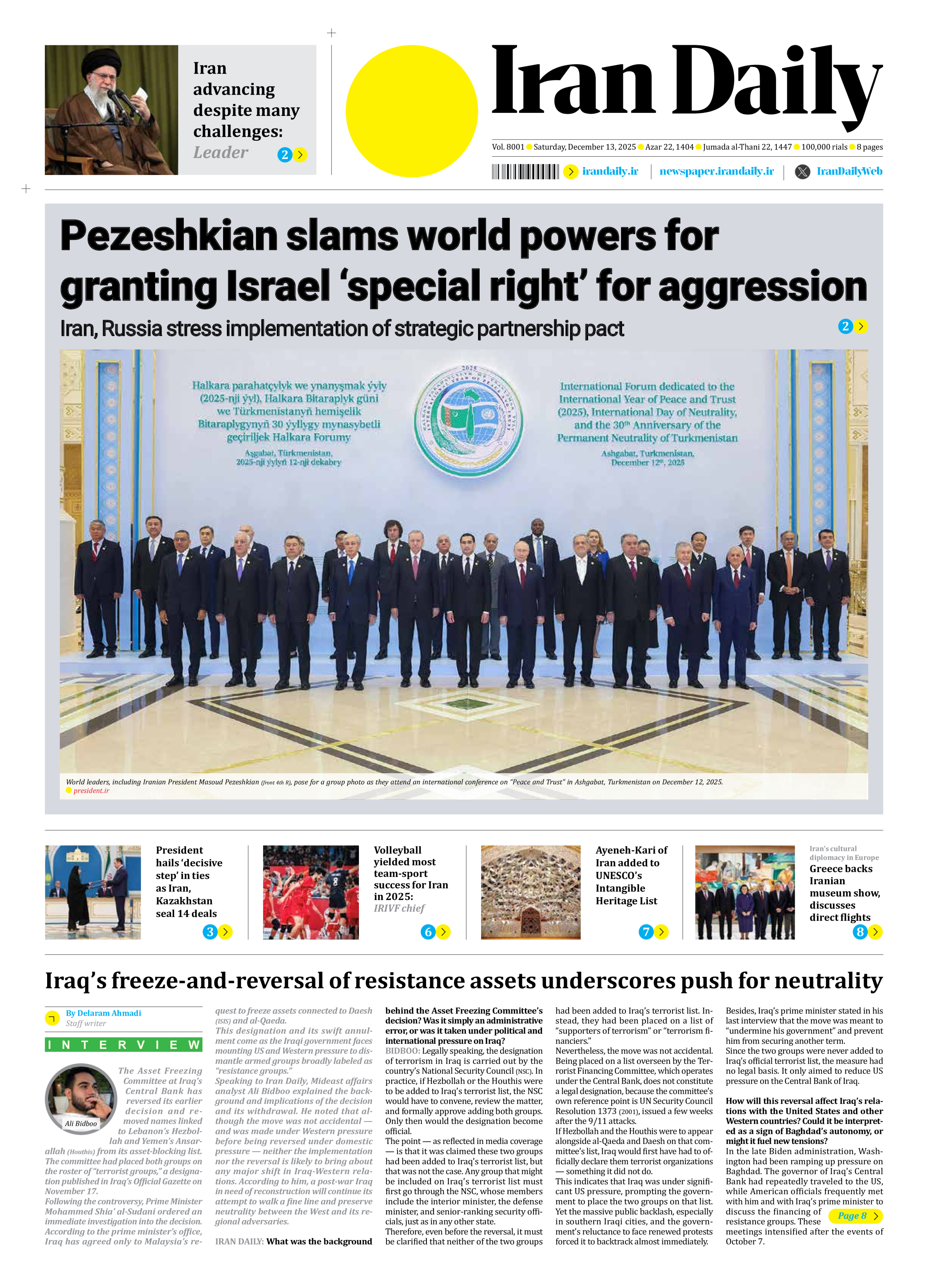 Iran Daily - Number Eight Thousand One - 13 December 2025