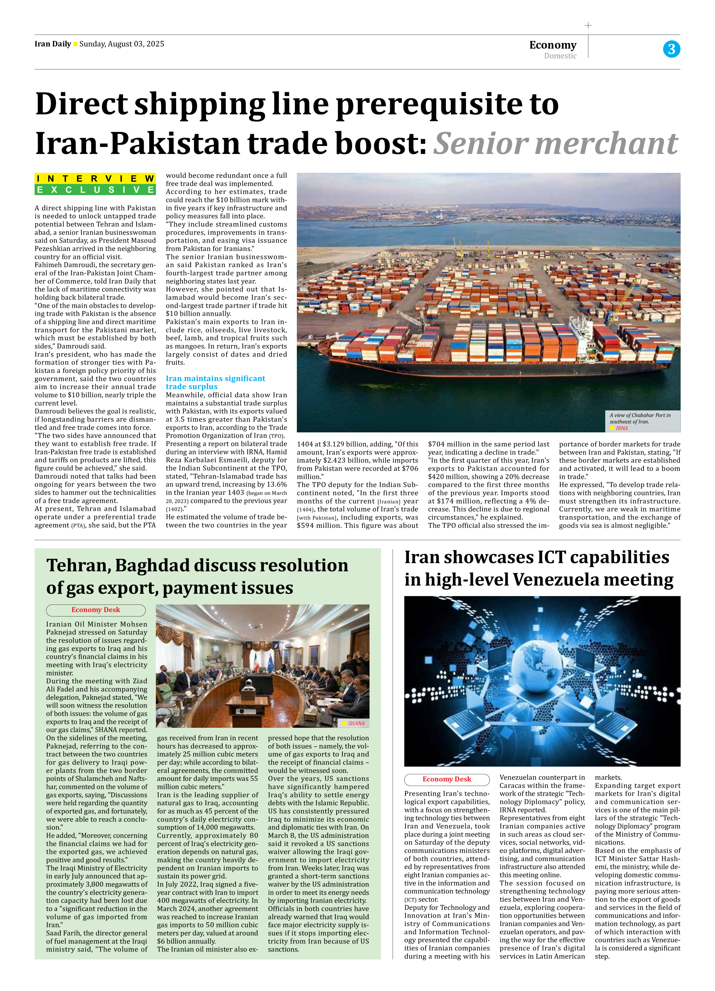 Direct shipping line prerequisite to Iran-Pakistan trade boost: Senior merchant