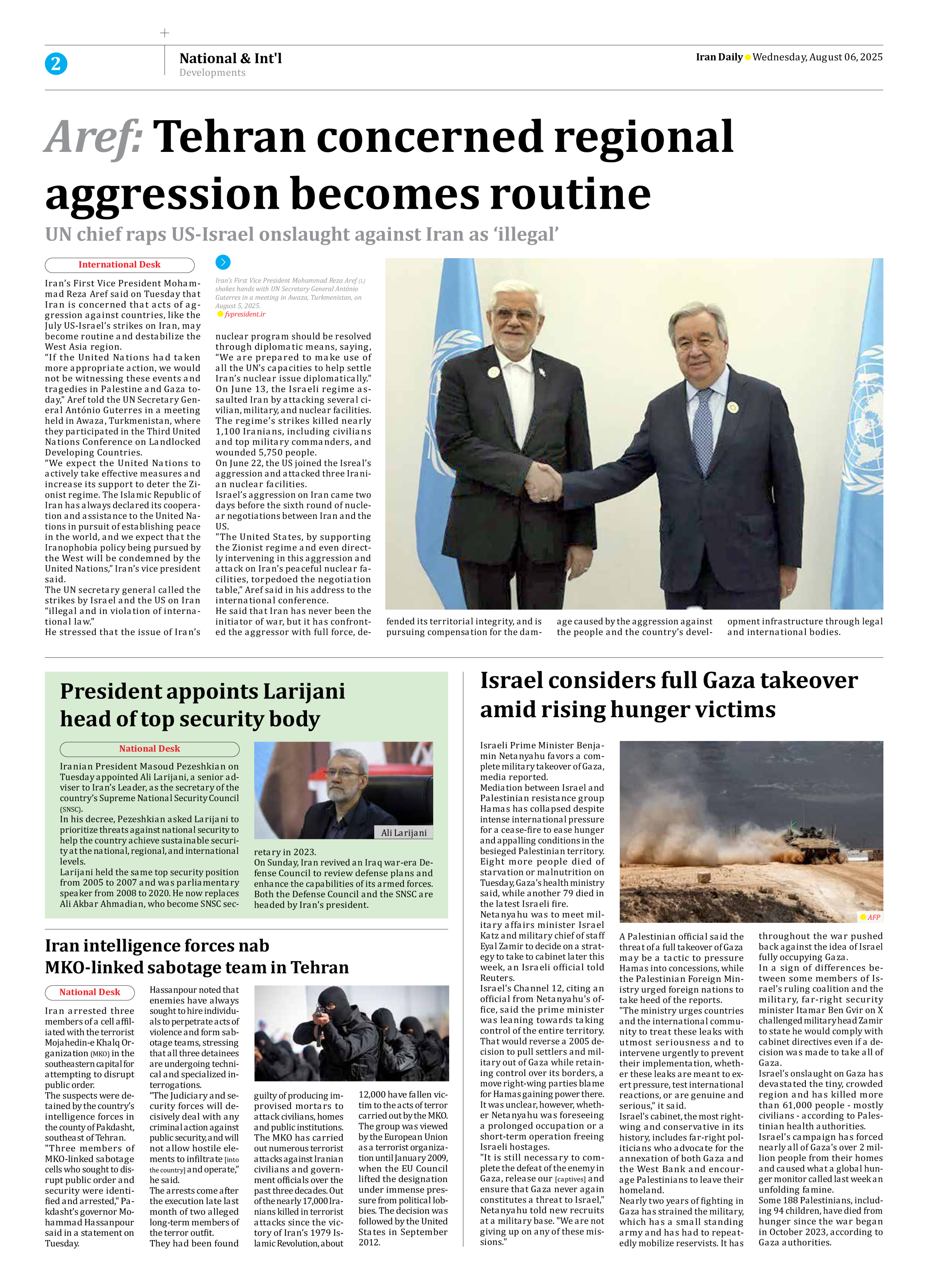 Aref: Tehran concerned regional aggression becomes routine