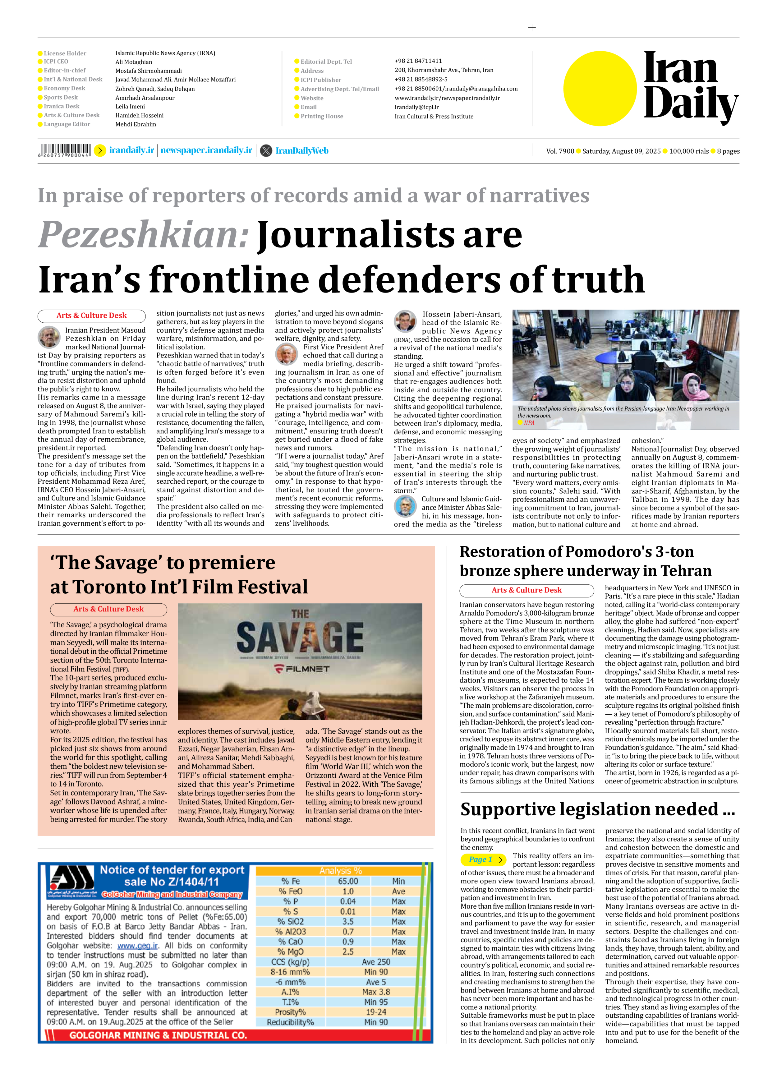 Pezeshkian: Journalists are Iran’s frontline defenders of truth
