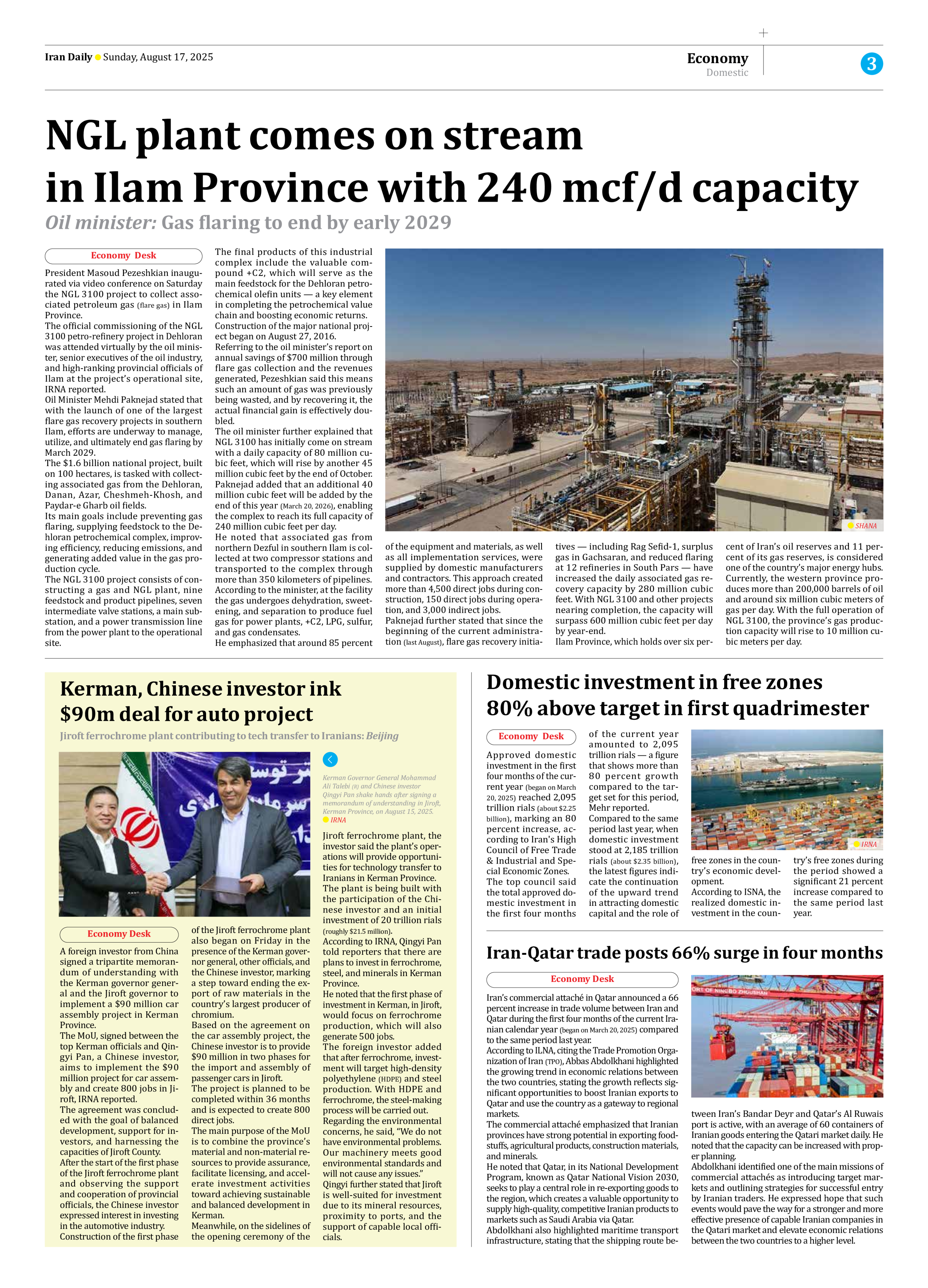 NGL plant comes on stream in Ilam Province with 240 mcf/d capacity