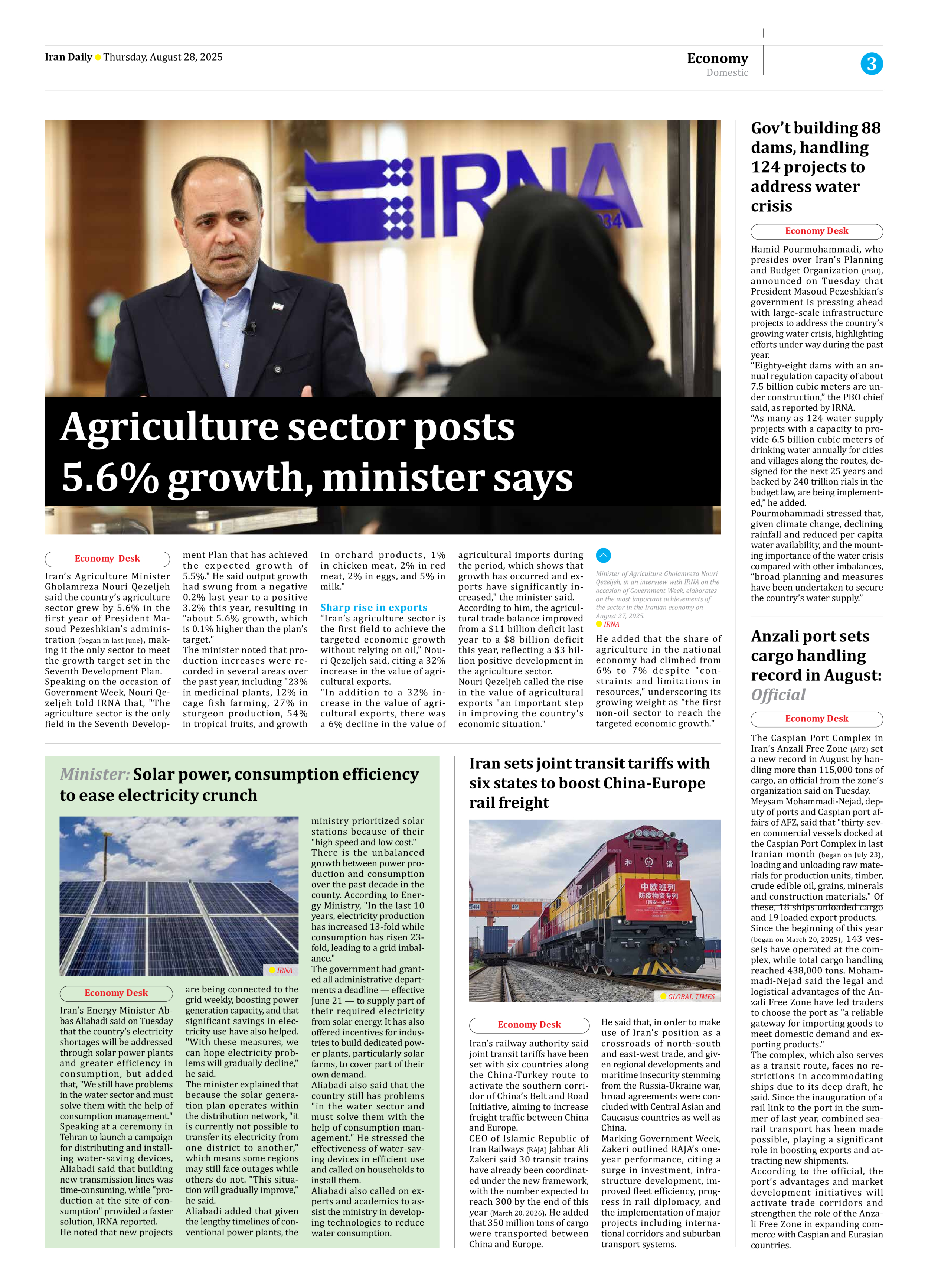 Iran sets joint transit tariffs with six states to boost China-Europe rail freight