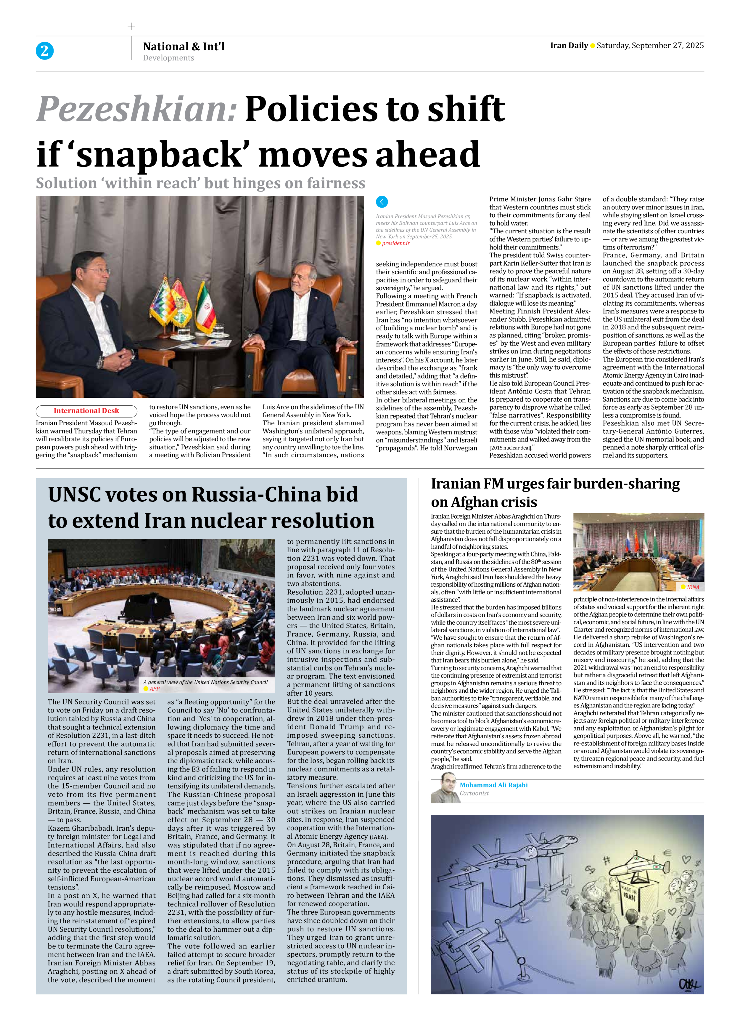 Pezeshkian: Policies to shift if ‘snapback’ moves ahead