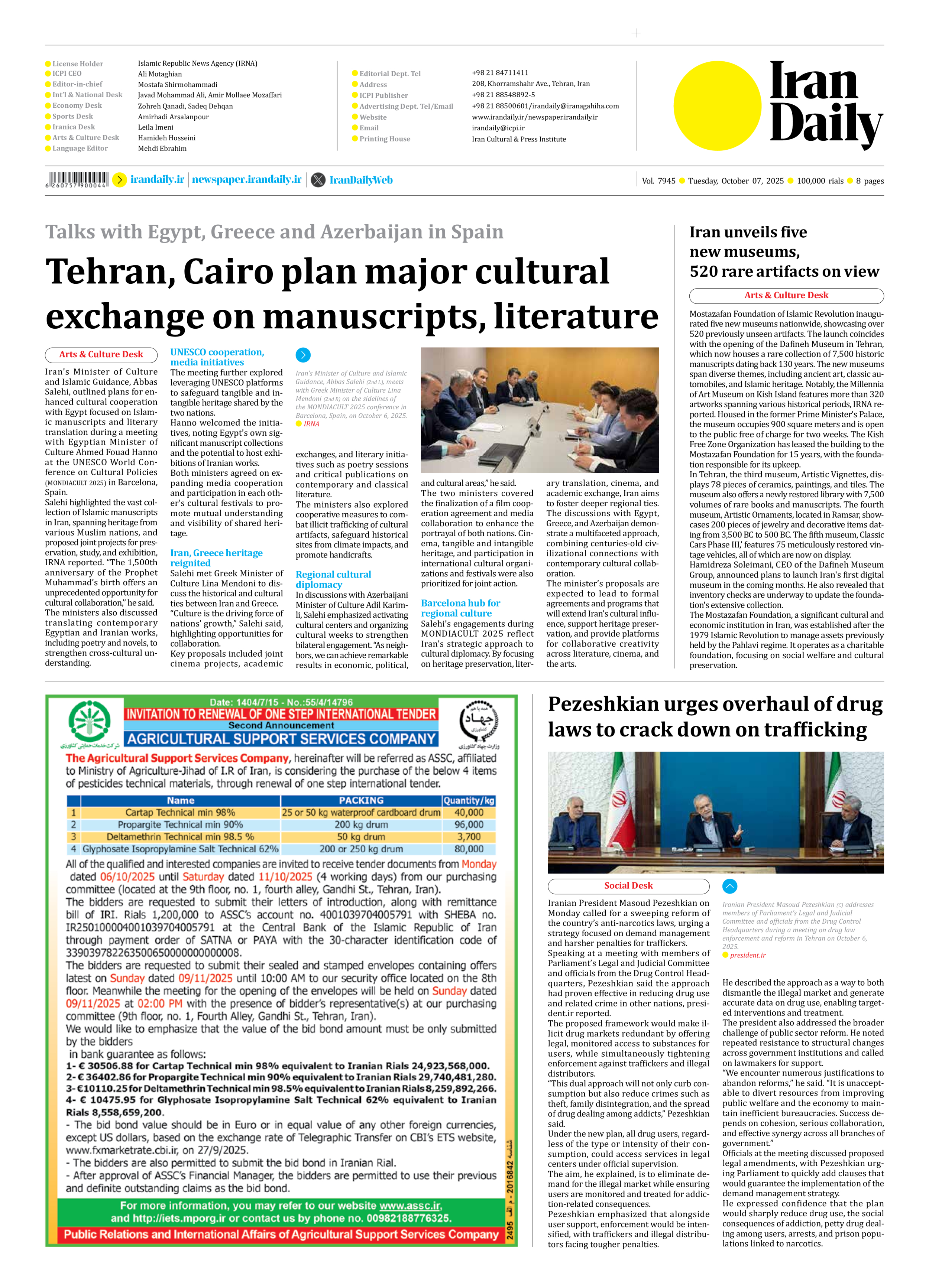 Tehran, Cairo plan major cultural exchange on manuscripts, literature