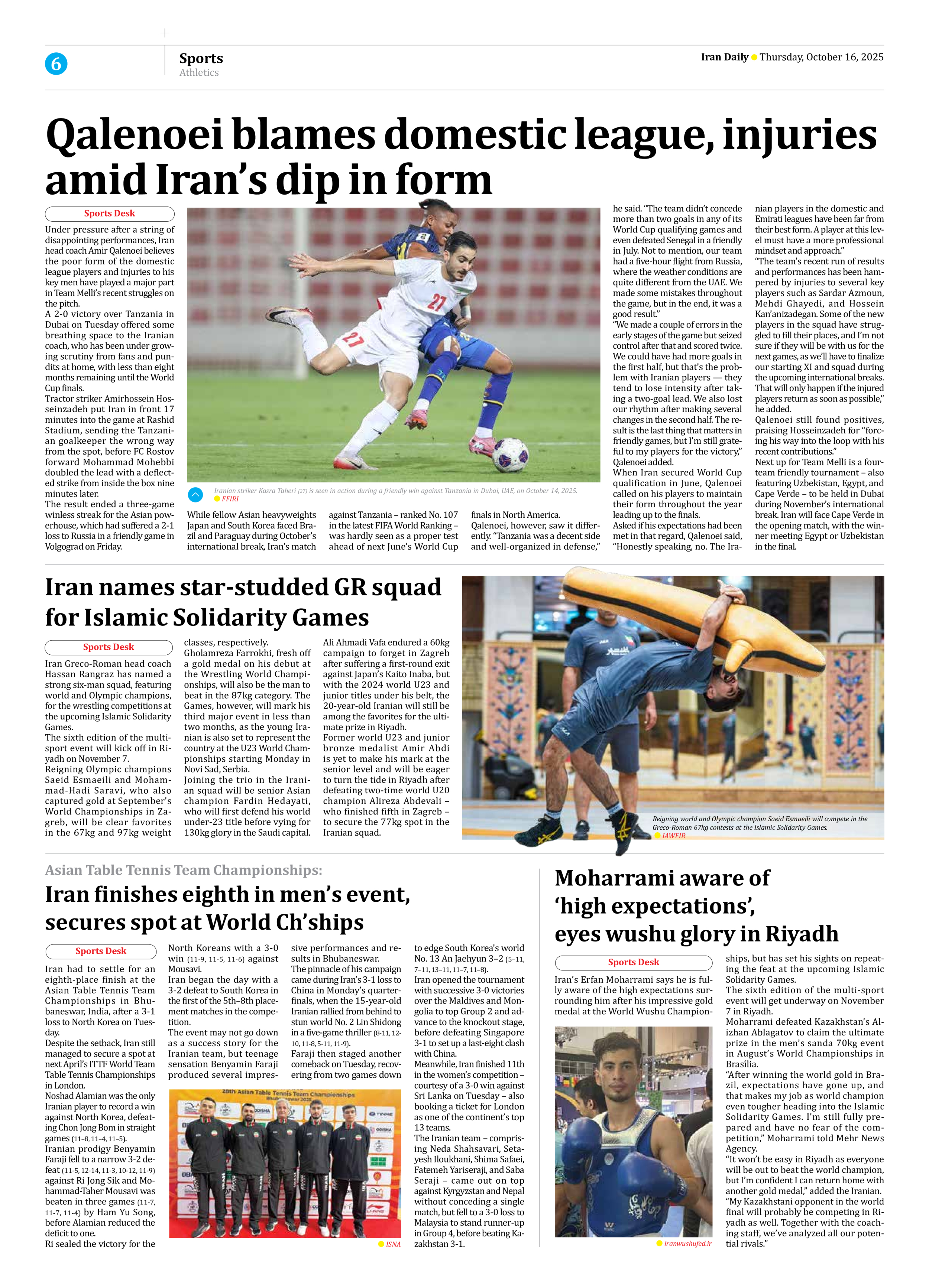 Qalenoei blames domestic league, injuries amid Iran’s dip in form