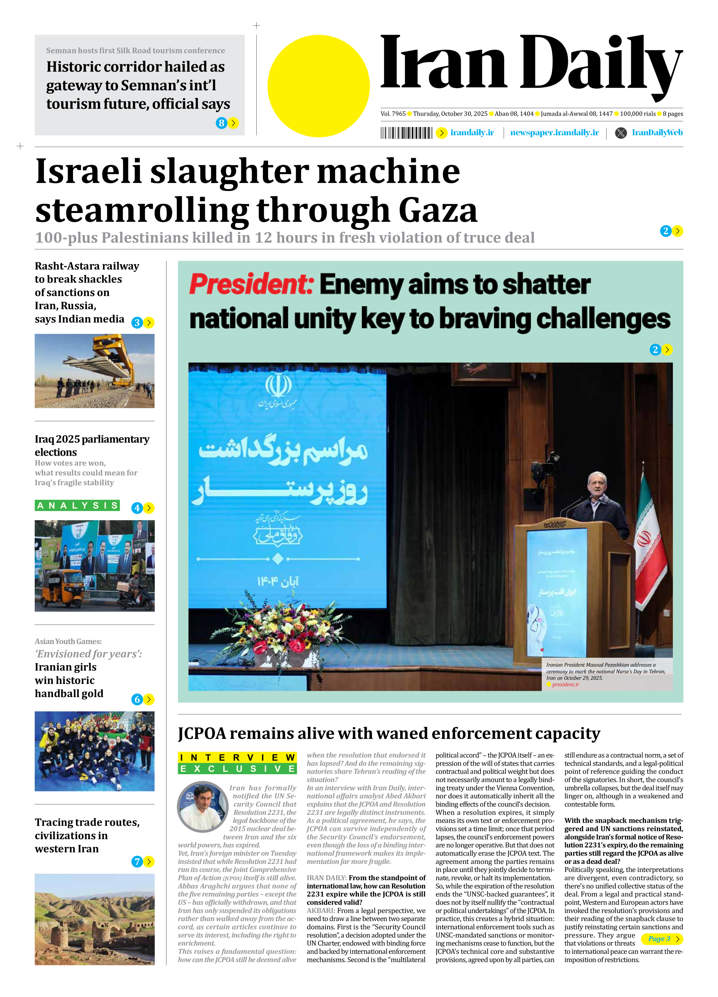 Iran Daily - Number Seven Thousand Nine Hundred and Sixty Five - 30 October 2025