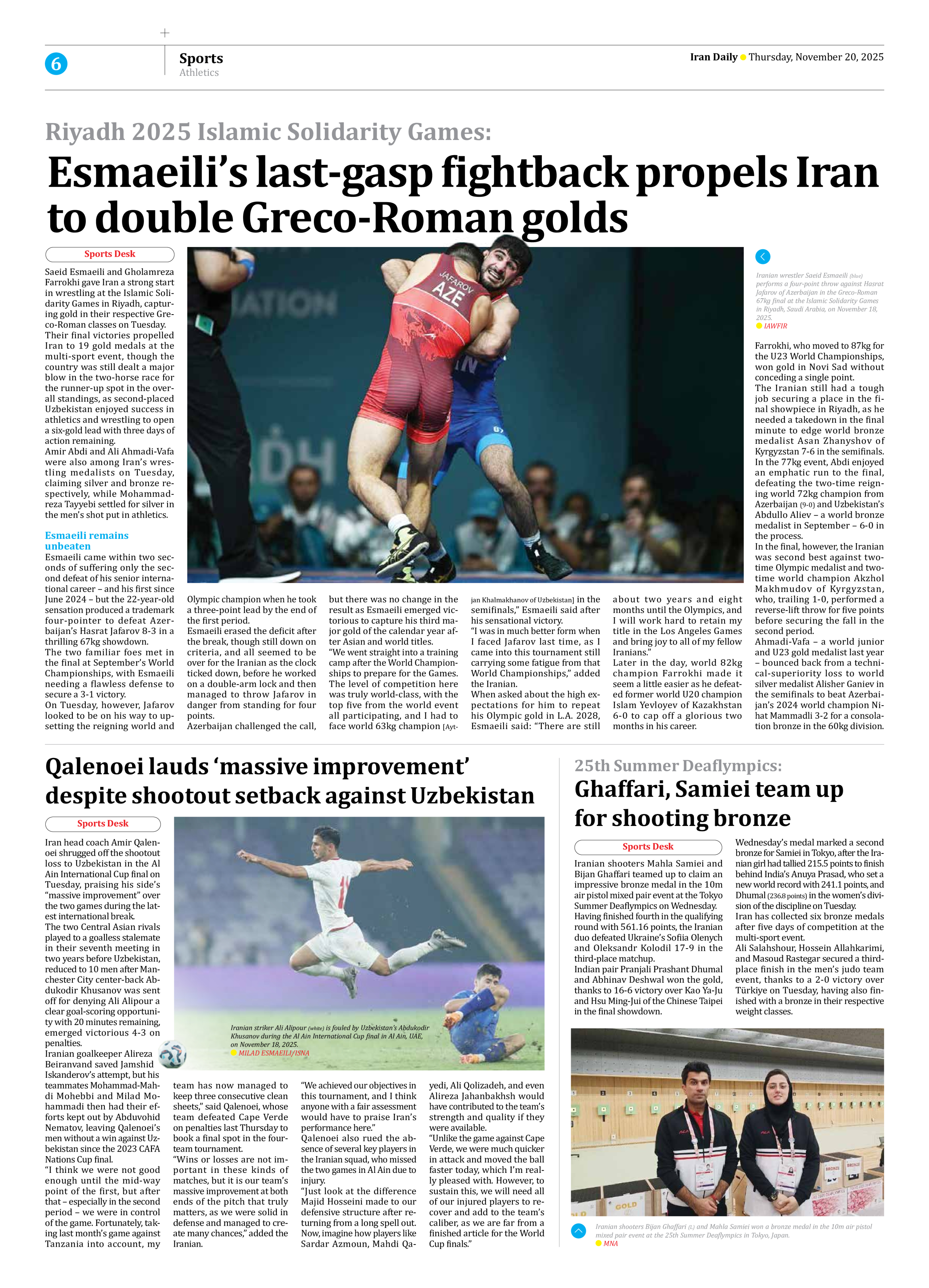 Esmaeili’s last-gasp fightback propels Iran to double Greco-Roman golds