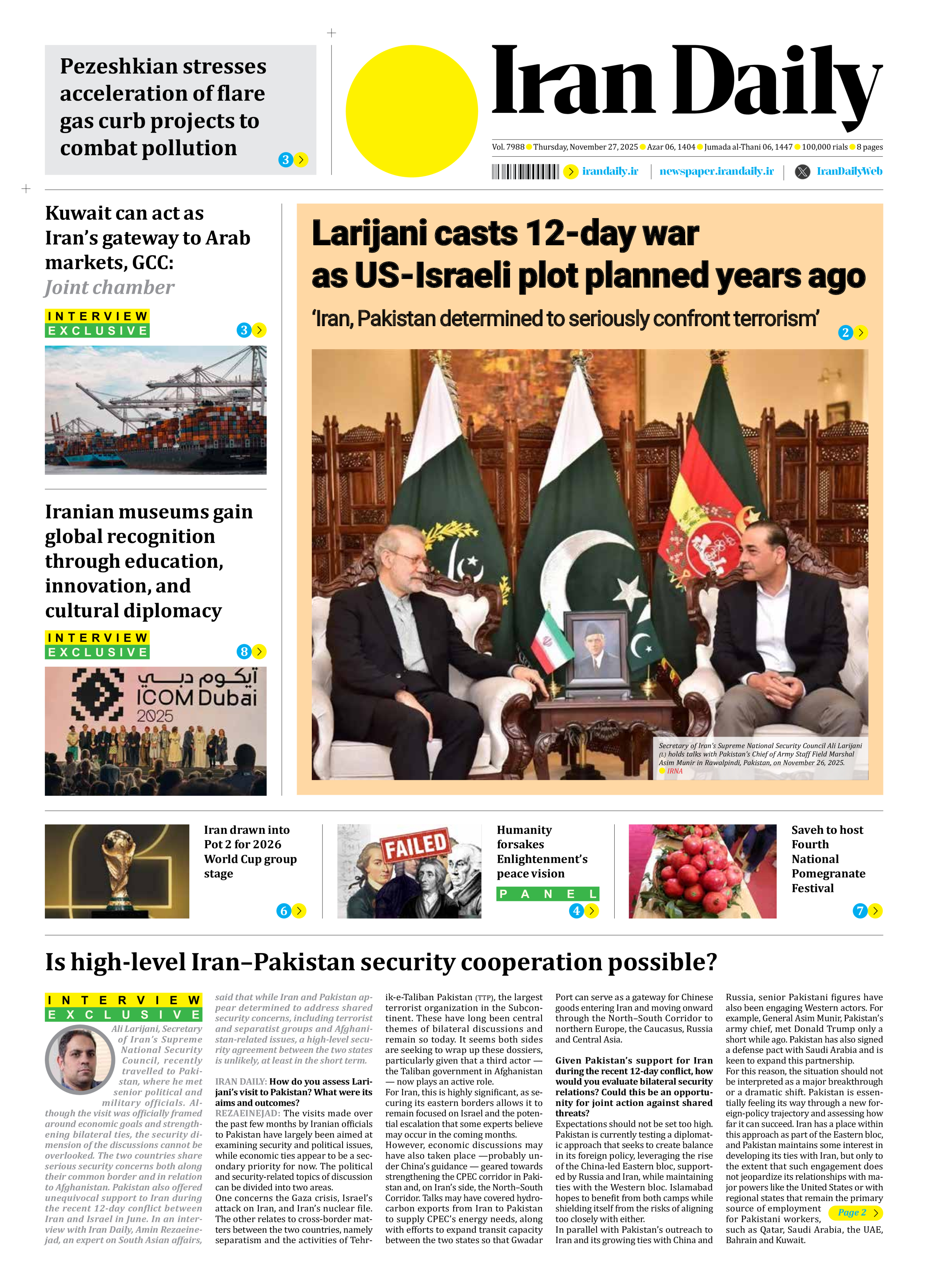 Iran Daily - Number Seven Thousand Nine Hundred and Eighty Eight - 27 November 2025