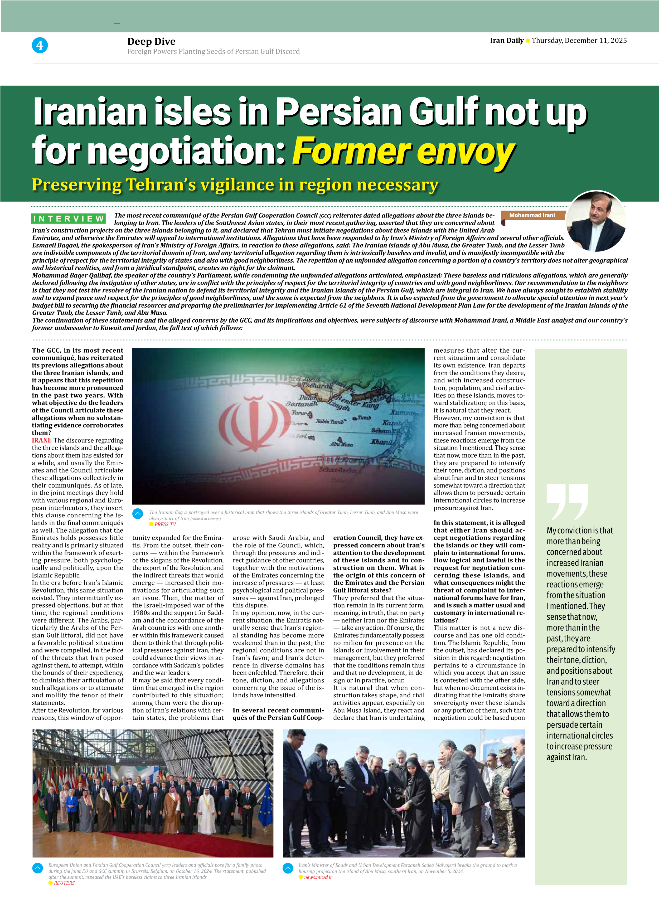 Iranian isles in Persian Gulf not up for negotiation: Former envoy