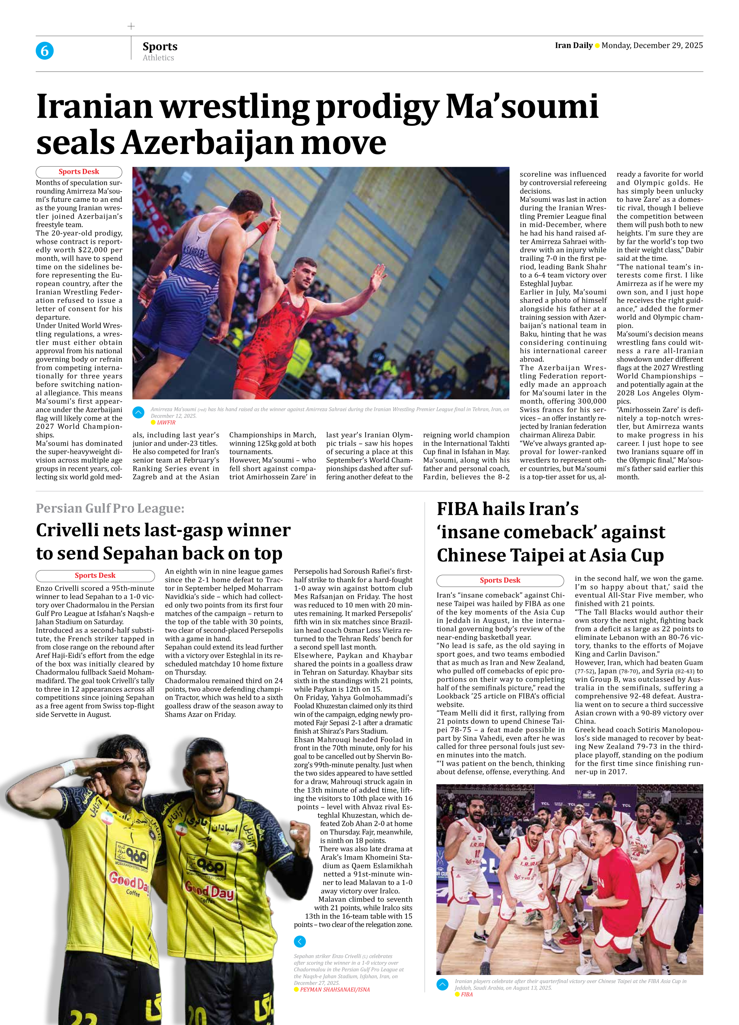 Iranian wrestling prodigy Ma’soumi seals Azerbaijan move