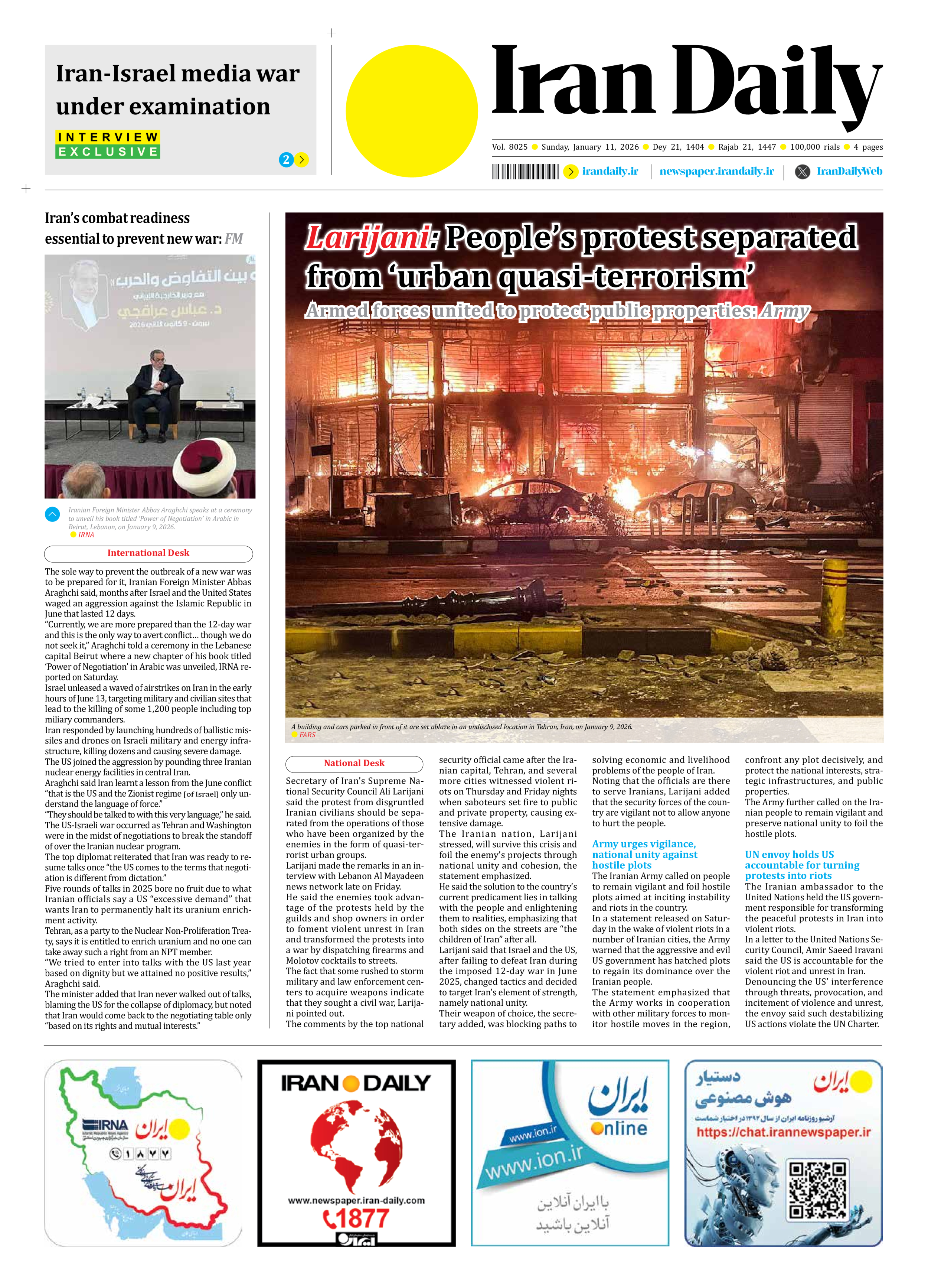 Iran’s combat readiness essential to prevent new war: FM