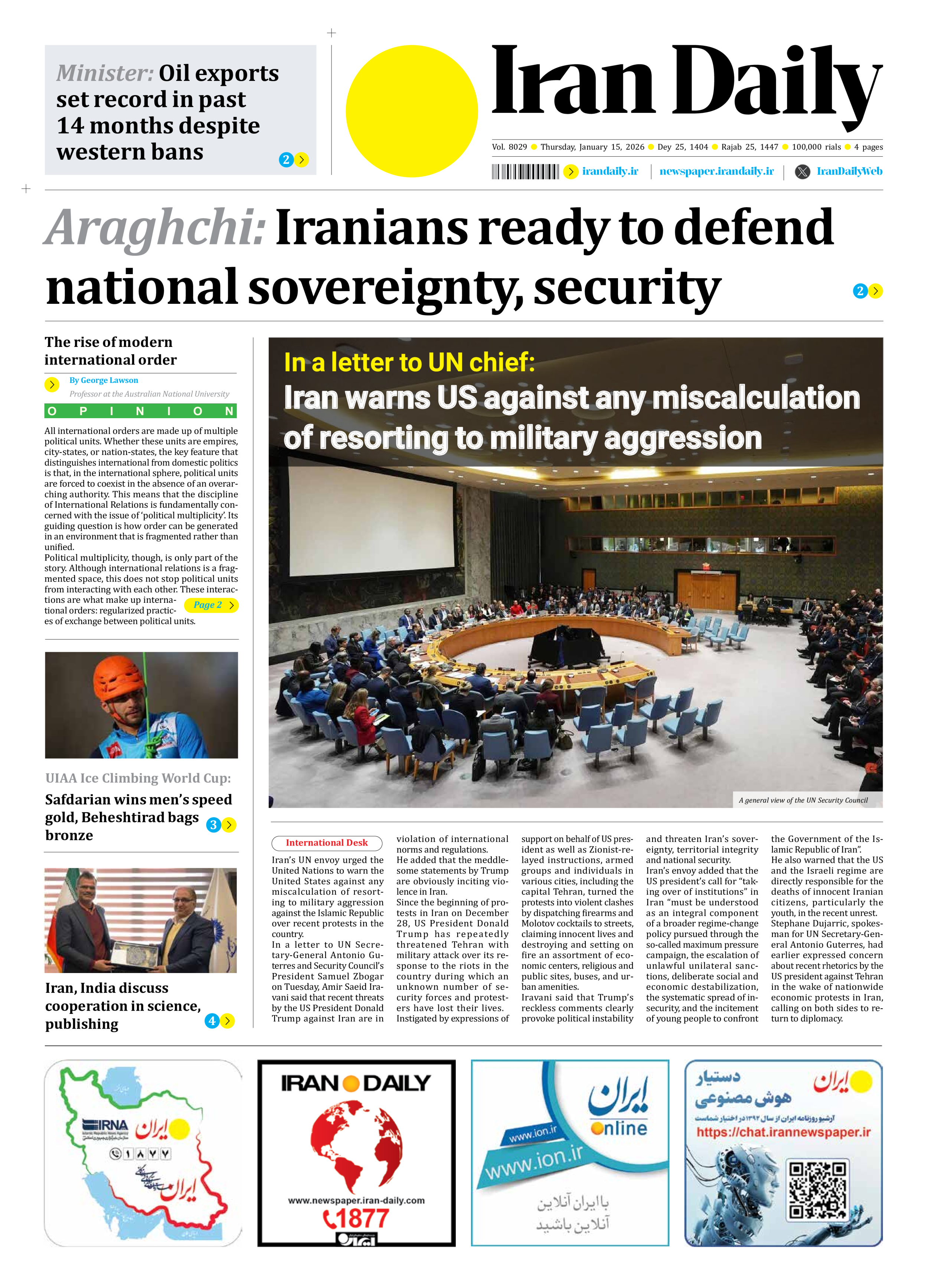 Iran Daily - Number Eight Thousand Twenty Nine - 15 January 2026