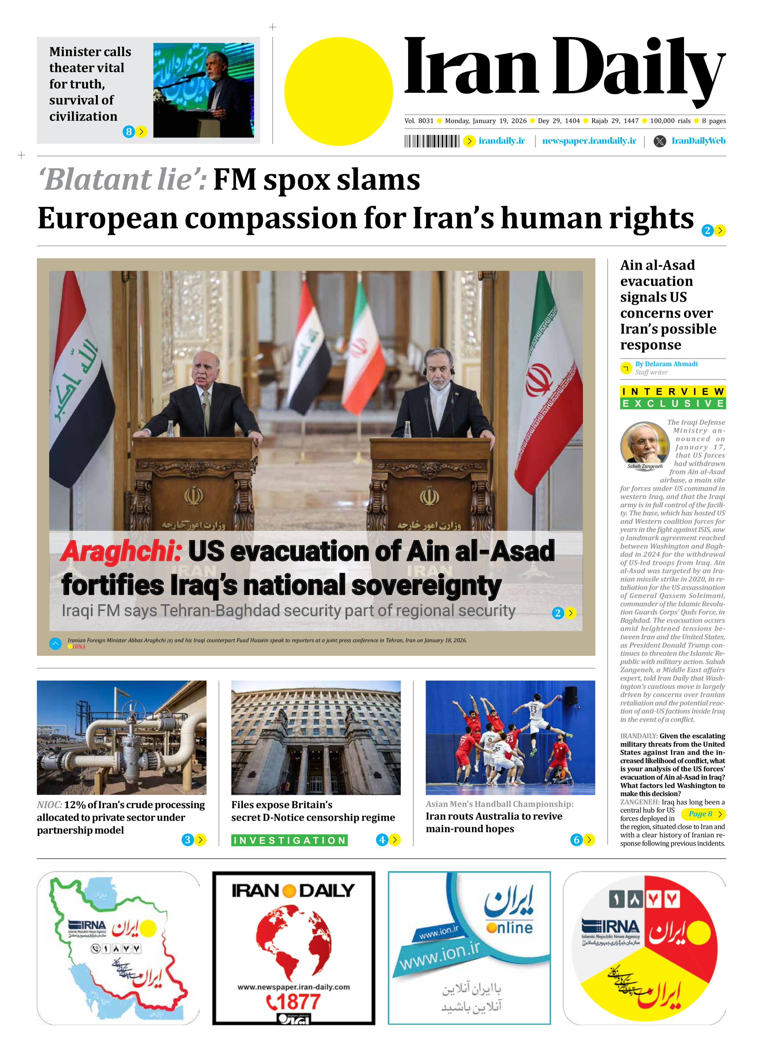 Iran Daily - Number Eight Thousand Thirty One - 19 January 2026