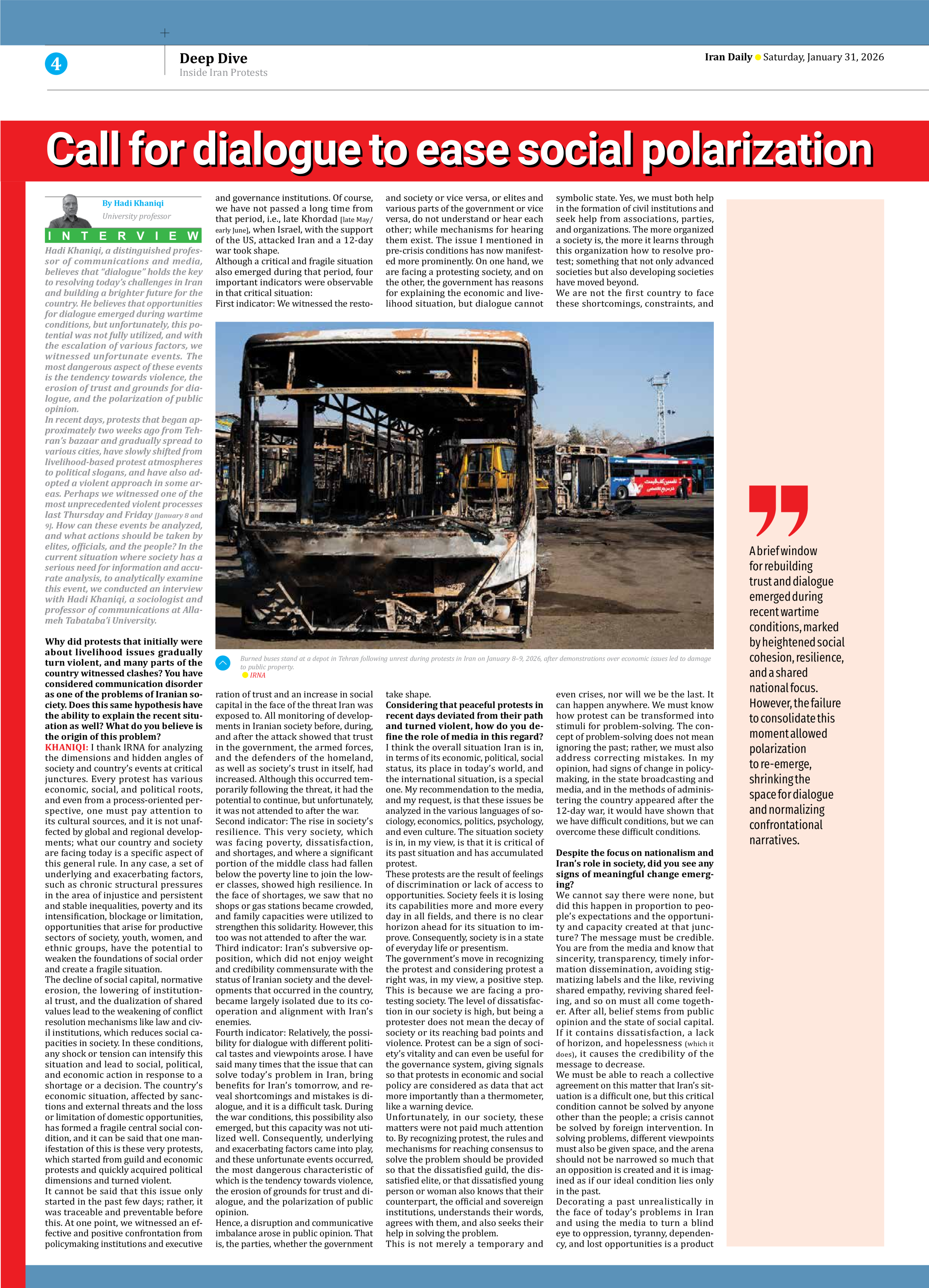 Call for dialogue to ease social polarization