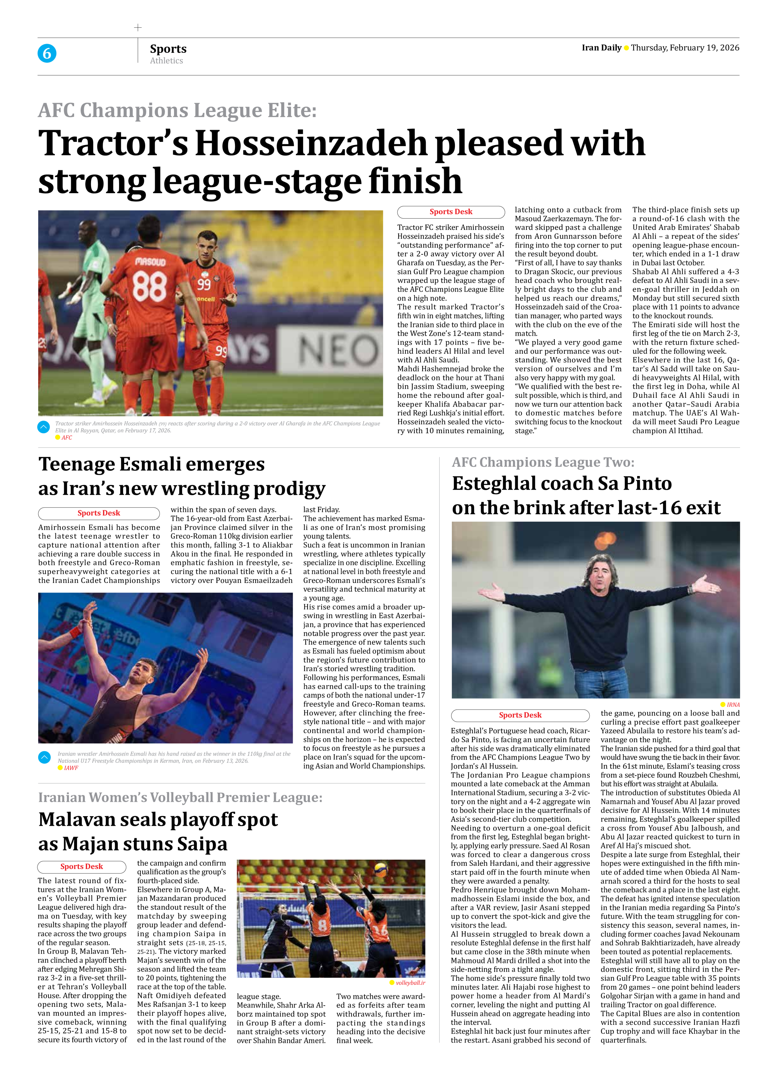 Tractor’s Hosseinzadeh pleased with strong league-stage finish