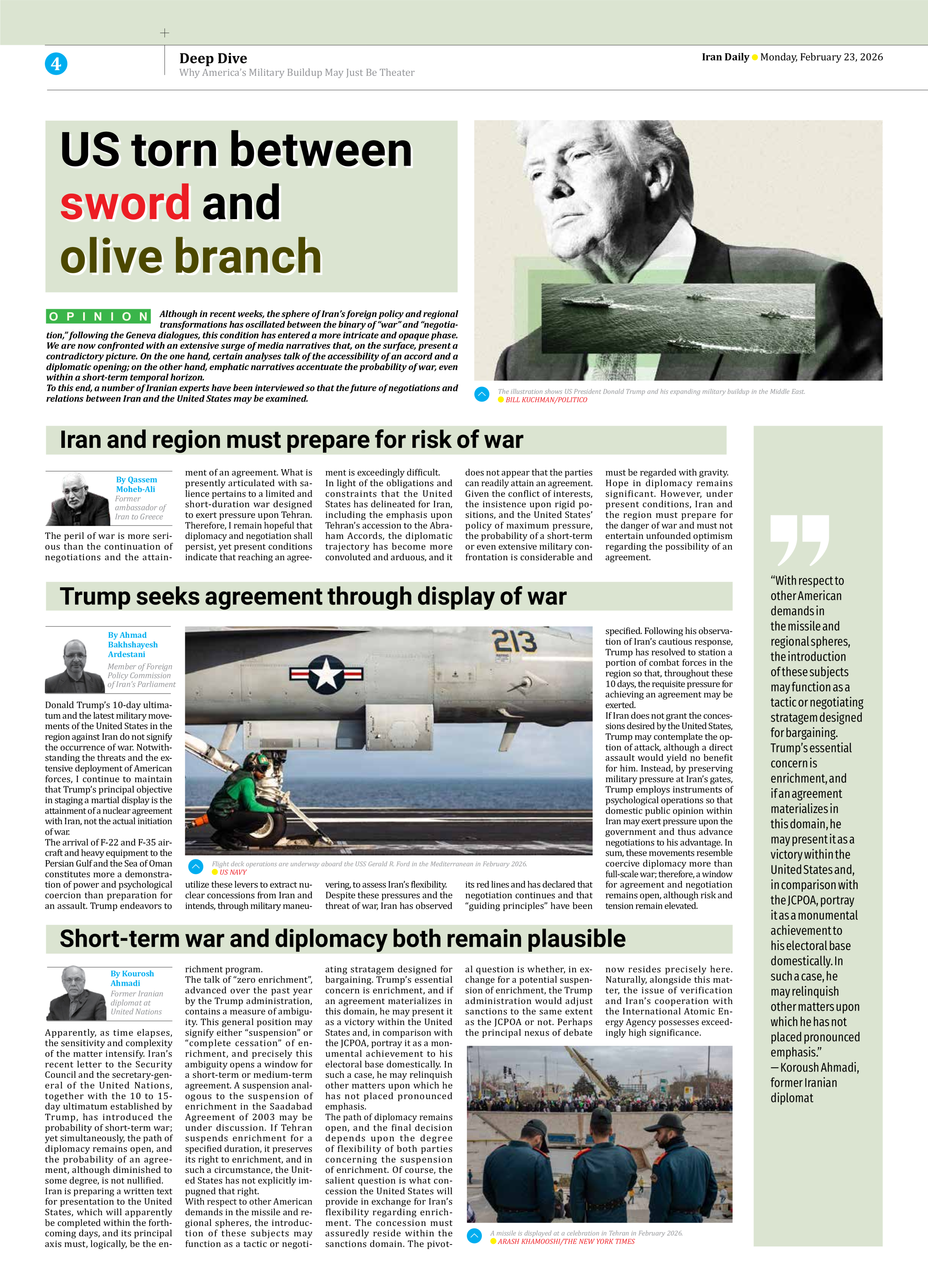 US torn between sword and olive branch