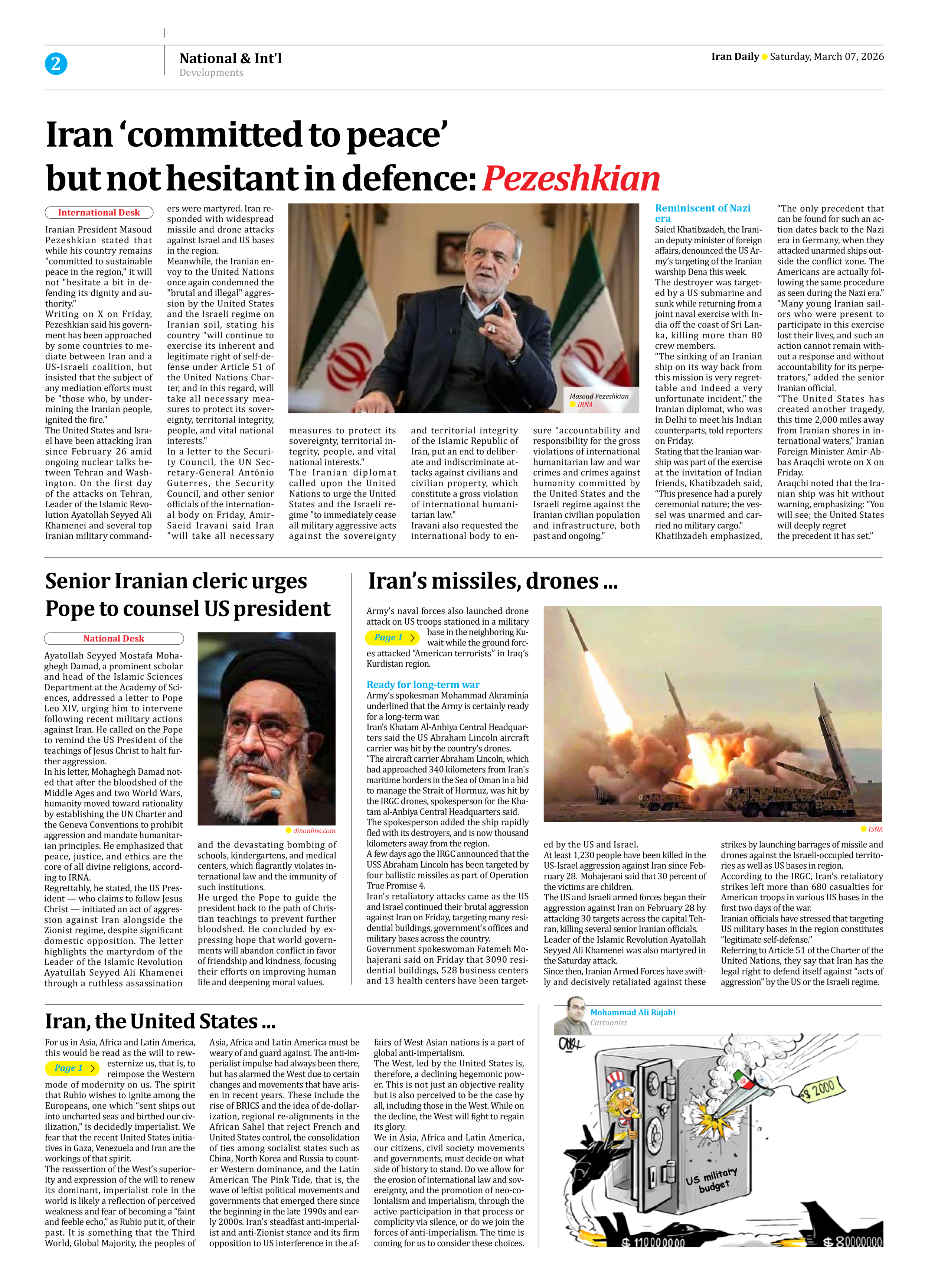 Iran ‘committed to peace’ but not hesitant in defence: Pezeshkian