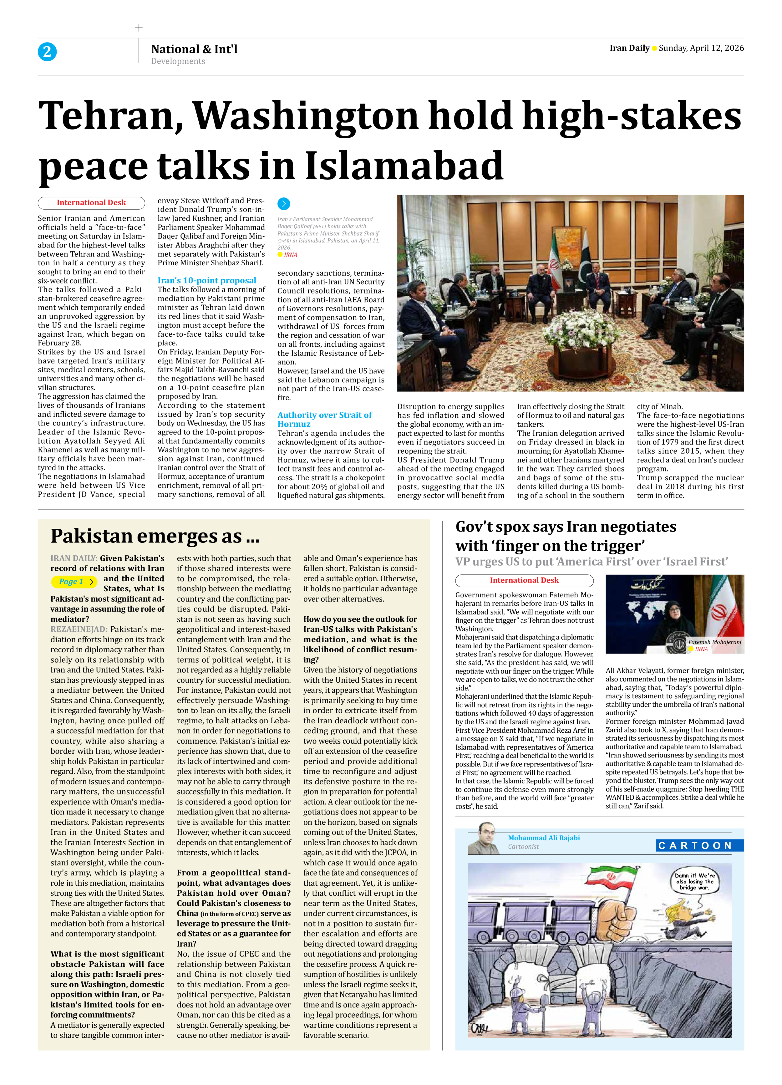 Tehran, Washington hold high-stakes peace talks in Islamabad